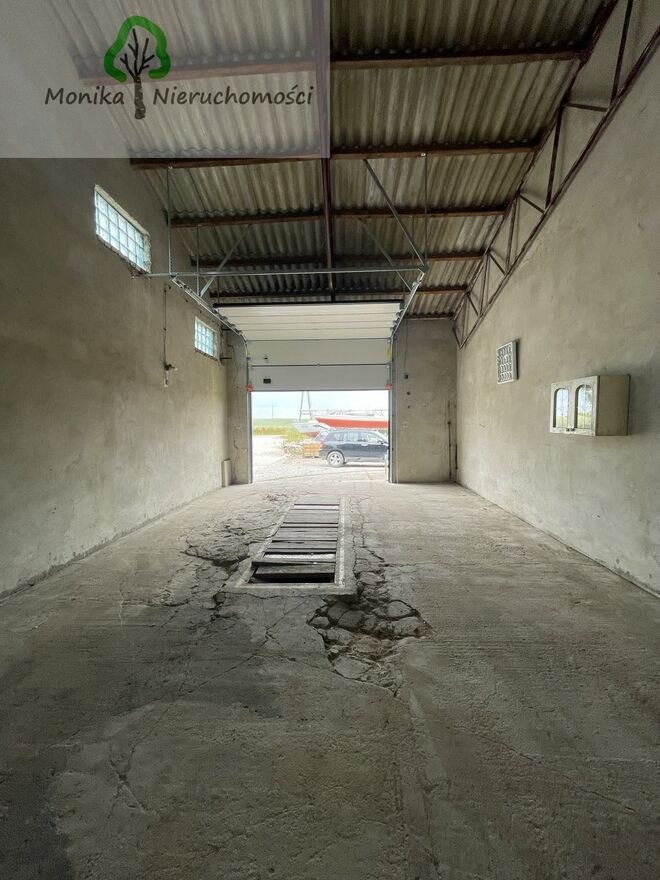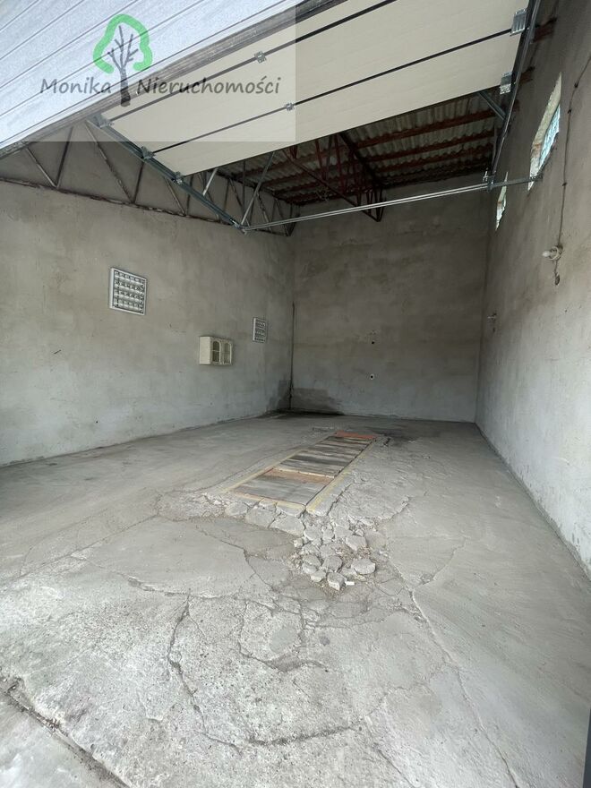 Do wynajęcia hala - pomieszczenie gospodarcze, garaż z kanałem o wymiarach 6m * 10 m o wysokości w najniższym punkcie 5 m i najwyższym 10 m.Pomieszczenie oświetlone, konstrukcji murowanej, na dachu eternit.